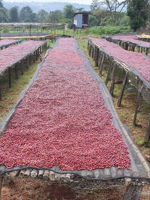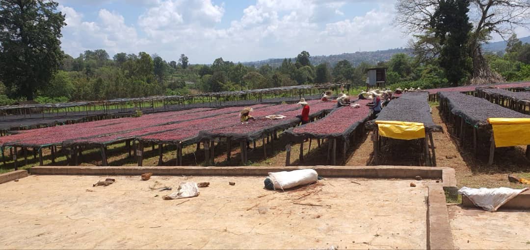 Kayon Mountain farm was established in 2012 by a family who have been in coffee for a generation. Most families in the area make a living by farming coffee as a primary cash crop. Taro washing station (one of the washing stations run by Kayon Mountain) is one the biggest processing sites in the area, allowing producers in this rural area to easily sell their coffees, find better prices, and access more job opportunities within the washing station infrastructure. /// In addition to premium coffee, Kayon Mountain has a focus on social responsibility. It has constructed a high school in Taro so that students won’t have to travel to receive education, distributed coffee seedlings to local producers, financially assisted member farmers in times of need, and supports an orphanage school in a neighboring village. /// The farm has a total area of 150 hectares, all on fertile volcanic red soil or deep sandy loam. Coffee trees are intercropped with false banana trees for shade. They make compost from coffee pulp and, in general, try not to waste anything they can use instead for production or conservation. /// This is a natural processed coffee (often called “sundried” in Ethiopia), so instead of removing the fruit and drying in parchment, whole, ripe cherries are dried in the sunshine on raised drying beds for about 15–18 days depending on the weather conditions. They’re turned regularly to prevent moisture concentration or overdrying. The natural process is difficult to execute well: beans need to be turned frequently for consistent and even drying. It’s easy to end up with mold issues or an excess of fermentation flavor, or at the very least achieve an acceptable cup but overpower the natural terroir of the coffee (the unique flavor that comes from variety, soil, proper harvest, and clean processing). But, when done right, the results can be sublime, with the natural terroir of the coffee further enhanced by an additional injection of sweetness and high-impact fruit flavor.